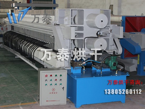 板框式壓濾脫水機是通過板框的擠壓,使污泥內(nèi)的水通過濾布排出,達(dá)到脫水的目的。它主要由凹人式濾板、框架、自動-氣動閉合系統(tǒng)側(cè)板懸掛系統(tǒng)、濾板震動系統(tǒng)、空氣壓縮裝置、濾布高壓沖洗裝置及機身一側(cè)光電保護(hù)裝置等構(gòu)成。設(shè)備選型時,應(yīng)考慮以下幾個方面: